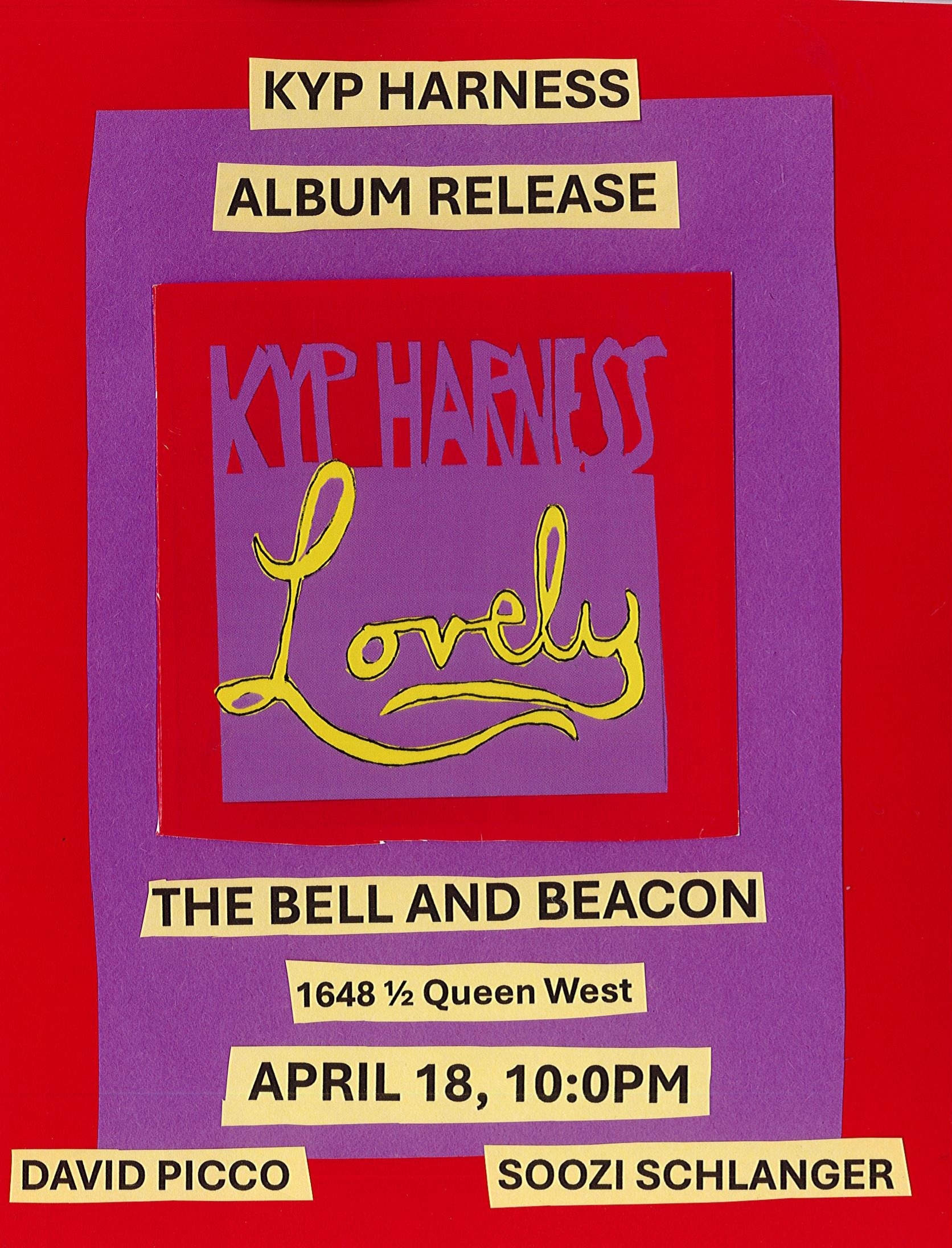K-Har Records glad to release ‘Kyp Harness’s Greatest Hits’ with a special show on August 6 at the Tranzac. The cult songwriter who counts among his fans Daniel Lanois, Ron Sexsmith and Mary Margaret O’Hara has picked out 14 fan favourites from his 13 independently- released albums, tracks featuring such local luminaries as Bob Wiseman, Paul Linklater, Dale Morningstar and the Dinner is Ruined, Ron Sexsmith, Don Kerr, and David Matheson.